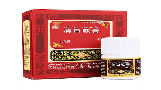 消白软膏:该药为淡黄色的软膏,具有特异的香气,是白癜风处方药。可清除局部异常粘液质,散寒利湿。(维医认为,白癜风是由异常黏液质引起,治白就需清除异常粘液质)。用于风湿阻络,气血不和所致的白癜风。